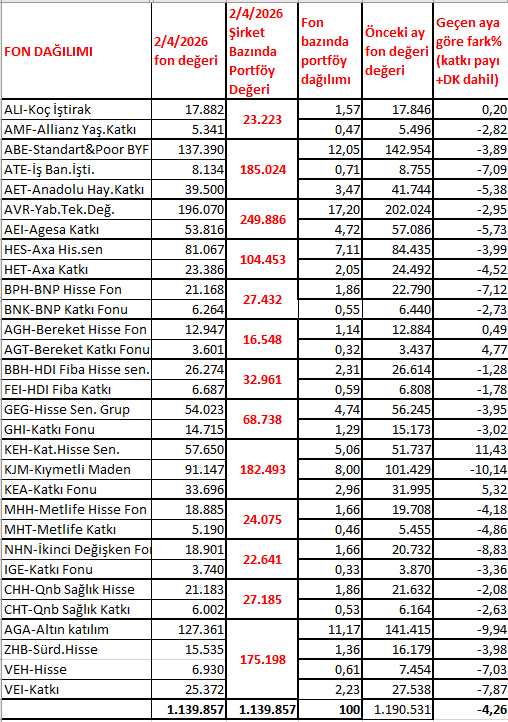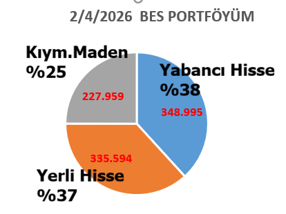 Varlık bazında portföyümün güncel dağılımı: Ana fon dağılımımı %46 yabancı hisse fon, %31 yerli hisse fon, %23 kıymetli madenler fonu olarak belirledim. Bu oranlardan %5 sapma olduğunda dengeleme çalışması yapacağımı da ifade etmiştim. Bu durumda yerli hisselerden ve kıymetli madenlerden bir miktar satış yaparak yabancı hisse fonlara aktaracağım.